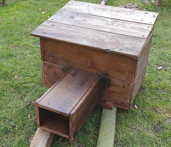 Voor de extra bescherming heb ik het geheel nog afgewerkt met een watergedragen beits. Belangrijk punt hierbij is dat je niet de binnenzijde van het huisje mee verft. De verf is in principe giftig voor dieren en mochten er ze aan het hout gaan knagen dan wil je dat natuurlijk niet.